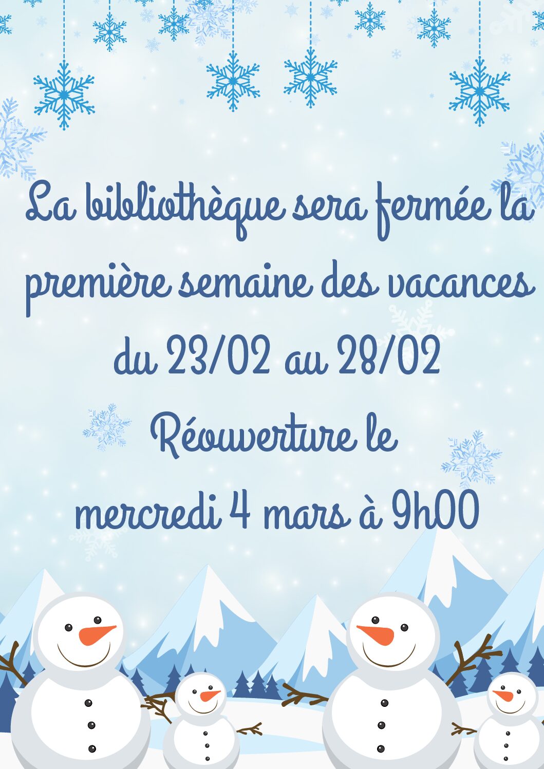 Fermeture de la bibliothèque pendant les vacances