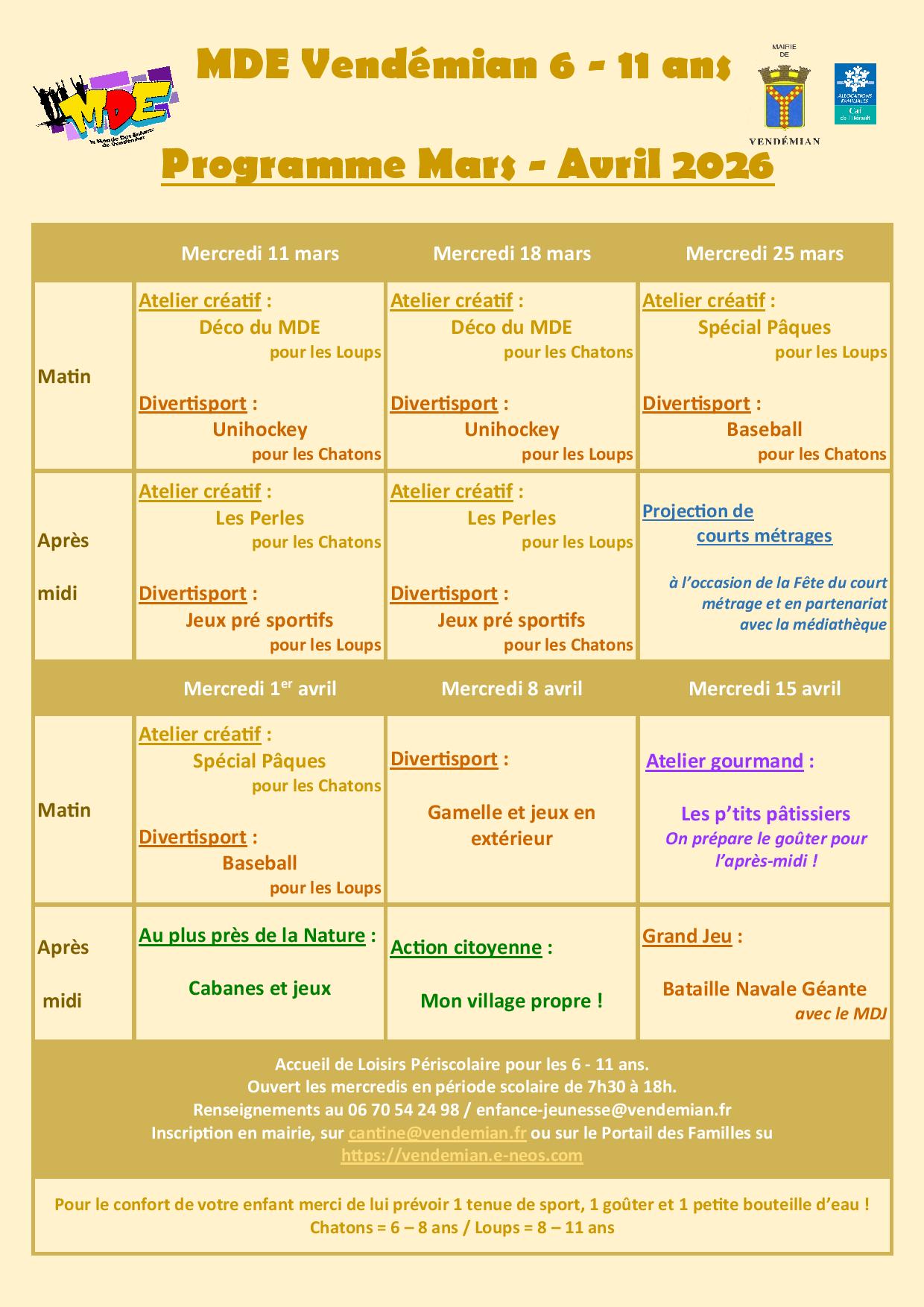 MDE Vendémia, 6 – 11 ans